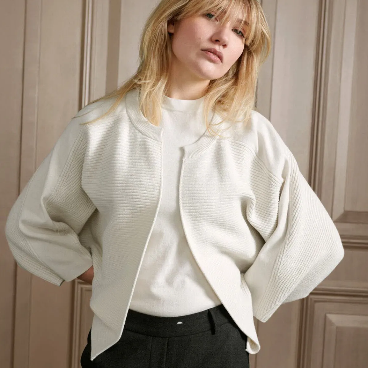 Sie begeistert uns durch ihr Rippstrickmuster in Weiß, die Fledermaus Ärmel, mit Dreiviertel Länge, sorgen für einen angenehmen Tragekomfort und den dennoch modischen Look.