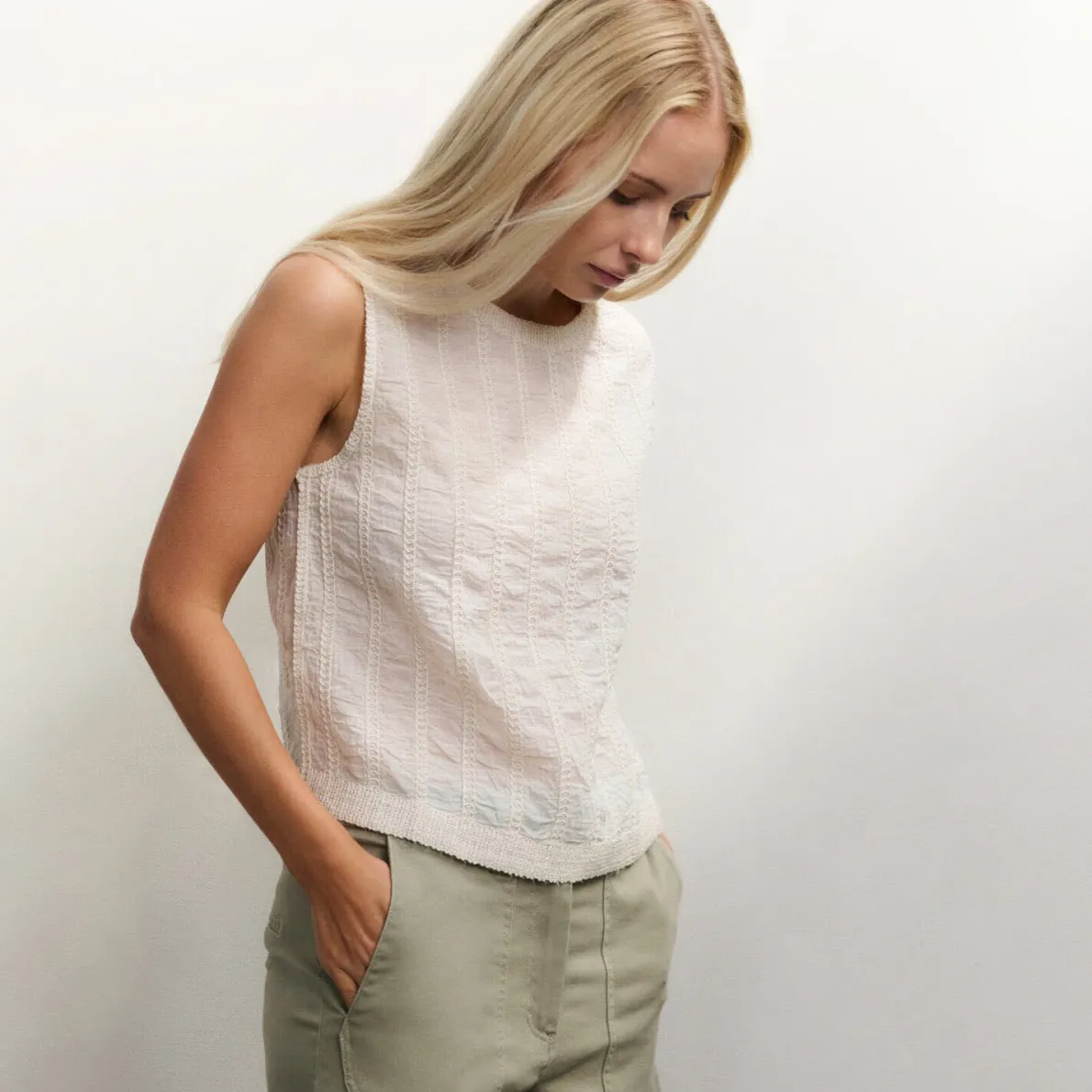 Embroidered singlet with rib details